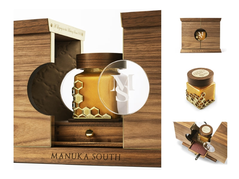 The Legacy Limited Reserve Manuka Honey is not just a honey - it’s a masterpiece. Encased in a handcrafted black walnut case with laser-engraved crystal glass windows, this exceptional 35+ UMF (MGO 2190+) honey is a tribute to 36 years of dedication and craftsmanship. Monogrammed Italian leather and 18k antique gold plating add to its prestige, making it a true collector’s item.