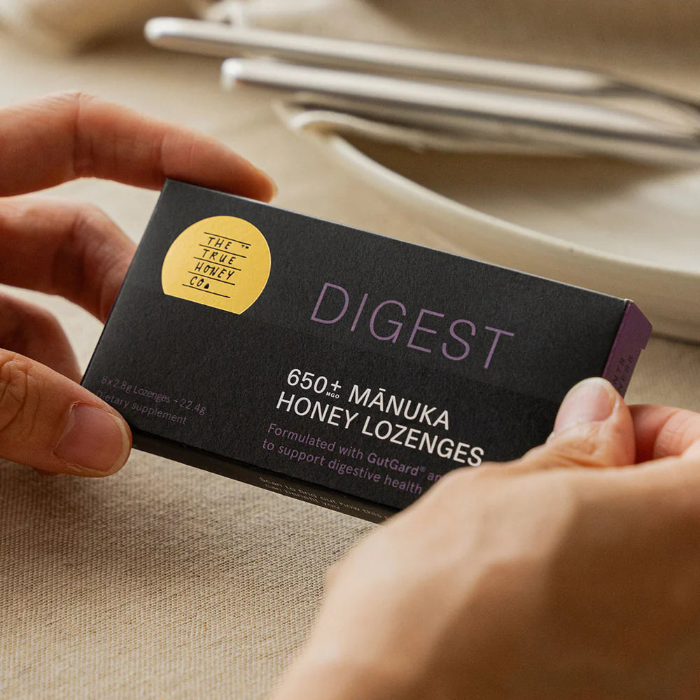 Digest Lozenges - 87% MGO 650+ Manuka Honey, Licorice root extract (Also contains maltodextrin and natural ginger flavour)